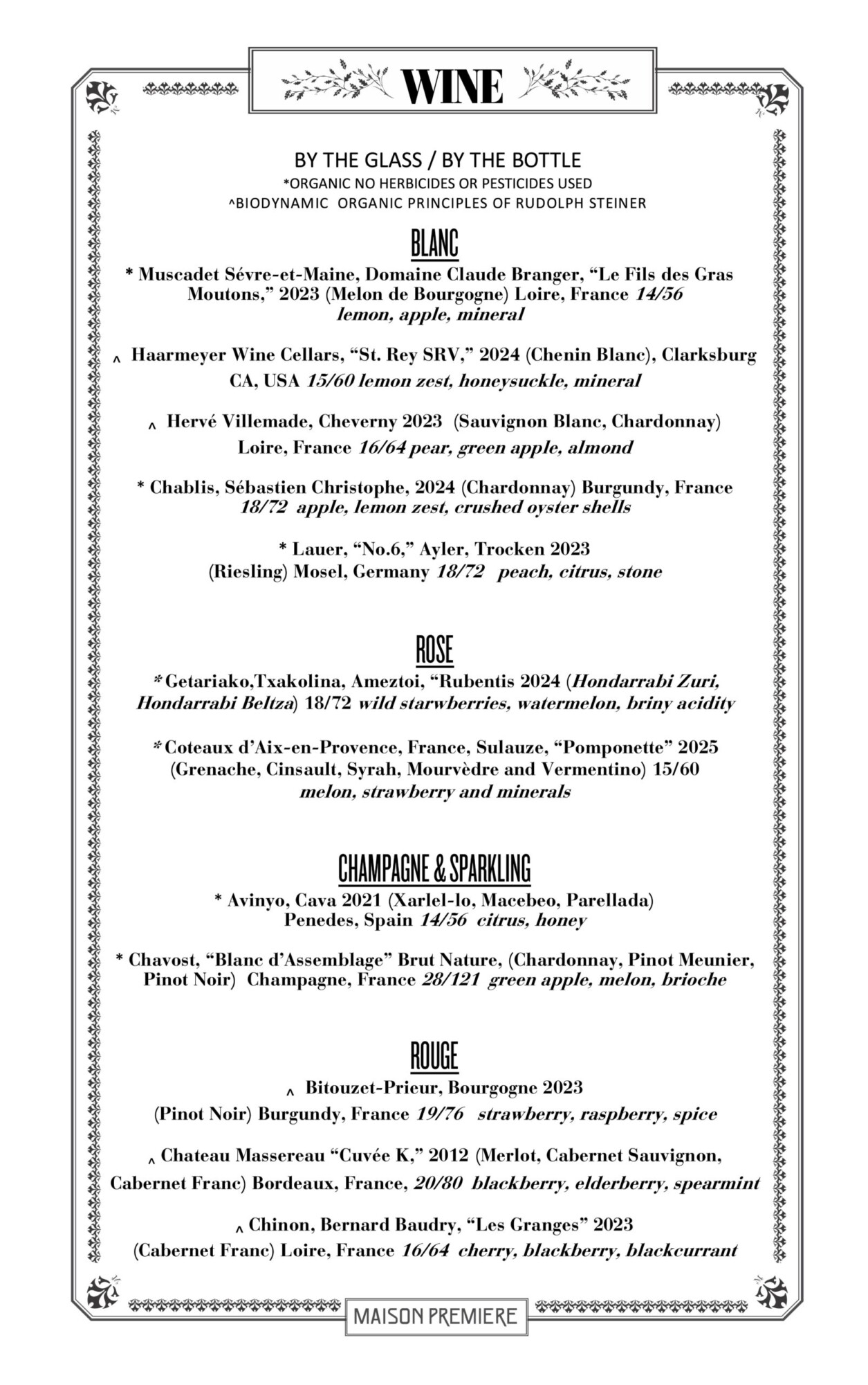 WINE BTG MENU 3.24.2026 | Maison Premiere